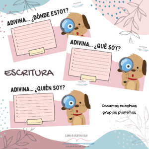 Aprovechando con los que inician (o están trabajando) en la escritura y en la lectura, preparamos unas plantillas para que ellos escribieran sus adivinanzas a los demás peques (sin conocerse entre sí) y, de esta forma, trabajamos durante unas semanas con todos ellos la escritura, la lectura y el lenguaje comprensivo y expresivo.